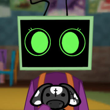 Looks like an animated ball of scribbles but likes the idea of box tv heads??π lives in Sable's library